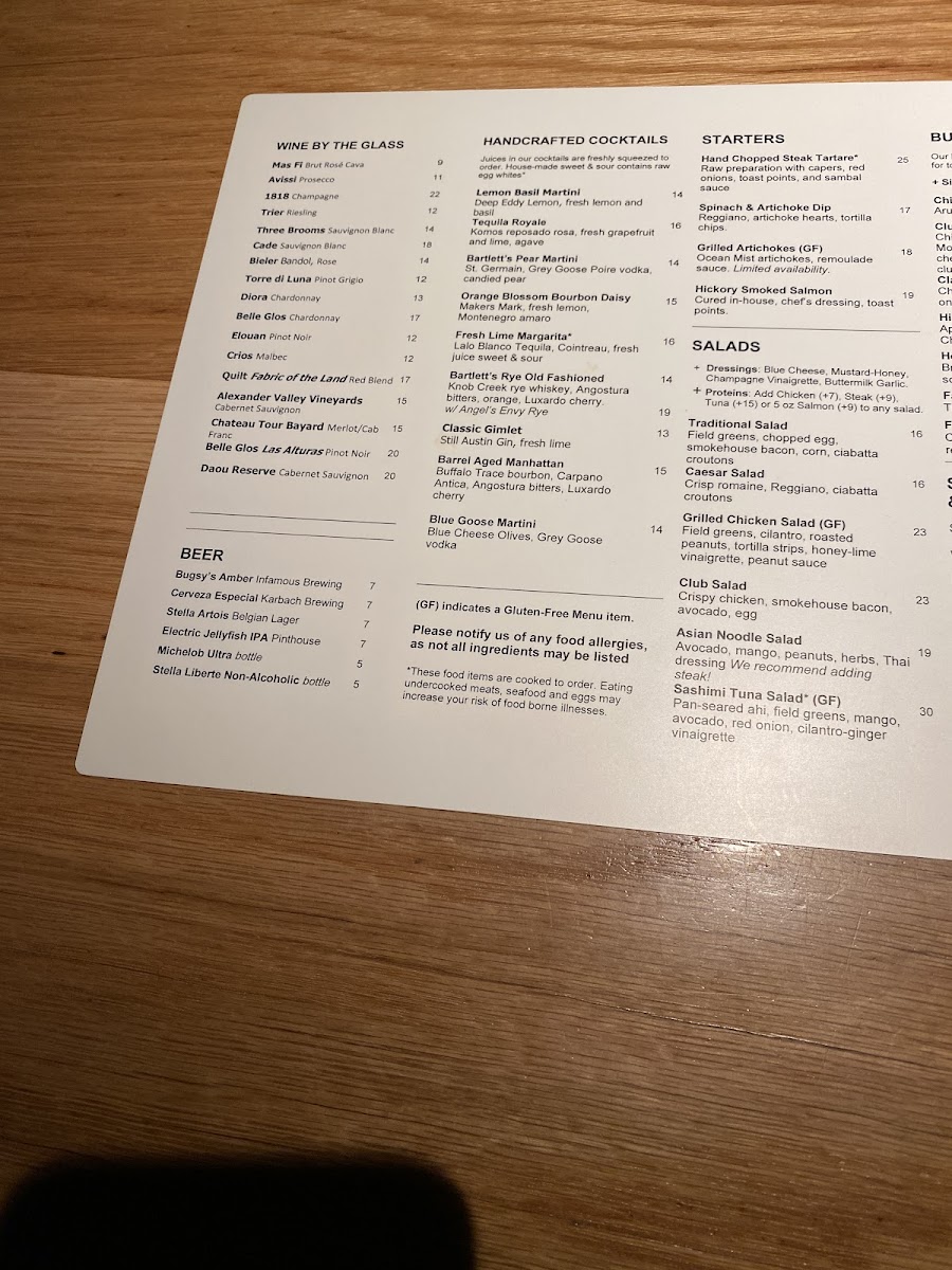 Whether it's your first or fiftieth visit, Bartlett's Restaurant promises a memorable dining experience, where every dish served is crafted with care and every moment spent is cherished. So, if you find yourself in Austin craving a delightful steakhouse experience, let Bartlett’s be your go-to destination—your taste buds will thank you!